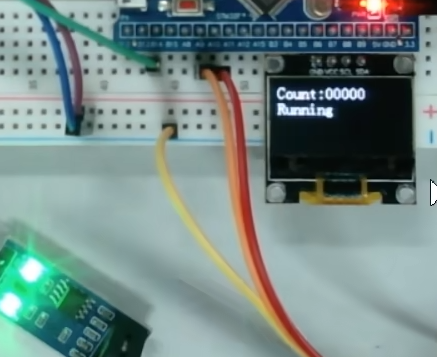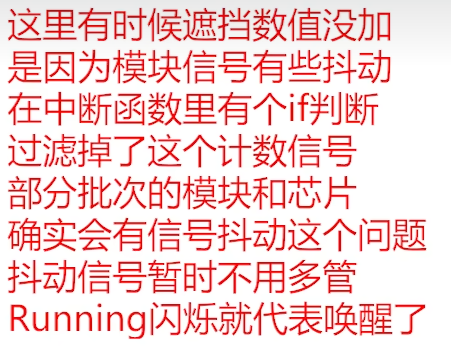 如果我们按一下复位键。复位之后第一次running闪烁很快。是正常的时间,我们遮挡的话,running闪烁就会变得很慢了,这是为什么呢。