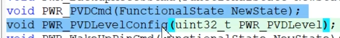 然后CMD就是使能PVD功能。如果需要使用PVD的话,就先指定阈值,然后使能PVD就可以。