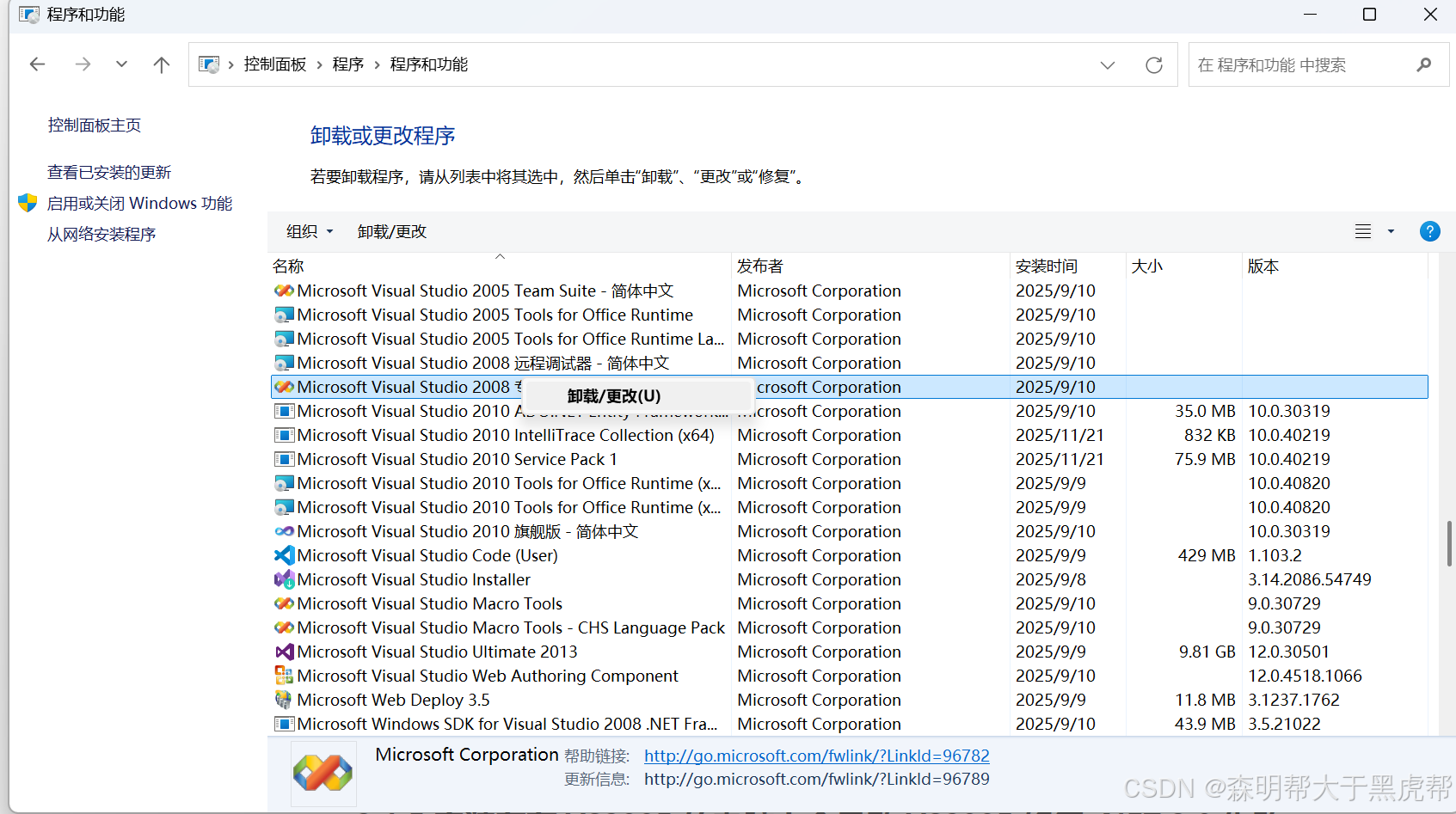 2.2.1.1 卸载 Windows SDK 可能影响 VS2008