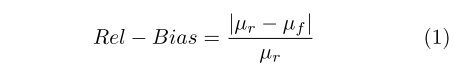 - 相对偏差(Rel-Bias):它是参考多光谱波段均值与融合多光谱波段均值之间的绝对差;除以参考图像的均值[153]。其理想值为0,使用以下公式计算。