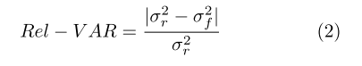 - 相对方差(Rel-VAR):通过参考图像的方差减去融合图像的方差,再除以参考图像的方差来计算[153]。其理想值为0。使用以下公式计算相对方差。