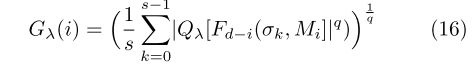 其中 \(s\) 表示尺度数,\(\sigma_{k}\) 是第 \(k^{th}\) 层的尺度因子,\(F_{d-i}(\sigma_{k})\) 是融合降级图像第 \(i^{th}\) 波段第 \(k^{th}\) 层对应的高斯图像,\(M_{i}\) 是原始多光谱图像的第 \(i^{th}\) 波段,\(Q_{\lambda}\) 是用于计算 \(F_{d-i}(\sigma_{k})\) 和 \(M_{i}\) 之间相似度的算子。\(q\) 是一个正整数,用于增强 \(Q_{\lambda}\)。融合图像第 \(i^{th}\) 波段的空间质量指数计算如下