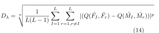 其中 \(D_{\lambda}\) 和 \(D_{\beta}\) 分别代表光谱和空间失真。\(\alpha\) 和 \(\beta\) 是加权系数。融合和原始多光谱波段的带间Q指数值的差值用于计算光谱失真。光谱失真可以如下计算