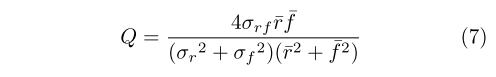其中 \(r\) 和 \(f\) 分别是大小为 \(M\times N\) 的参考和融合多光谱波段。\(\bar{r}\) 和 \(\bar{f}\) 分别是参考和融合多光谱波段的均值。