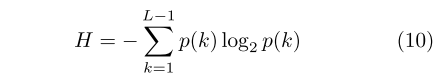 其中 \(L\) 是被分析图像的动态范围,\(p(k)\) 是第 \(k^{th}\) 个灰度级出现的概率。交叉熵计算源图像和融合图像之间信息的相似性。理想情况下,熵与交叉熵这两个值都应更大 [168,25]。