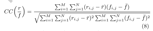 相关系数(CC):它是参考图像和融合图像之间相关性的度量[153]。有时,也计算高频分量之间的相关性,如[183]所建议的,以评估融合图像中空间信息的改进[64]。使用以下公式计算原始多光谱波段和融合多光谱波段之间的相关系数。