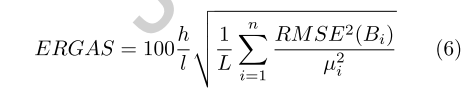 - 相对全局无量纲综合误差(ERGAS):指的是合成过程中的全局相对无量纲误差。它根据RMSE值的总和计算。它比RMSE值更稳健[152]。由以下公式给出