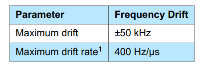 including both the initial frequency offset and drift. The frequency drift during any packet