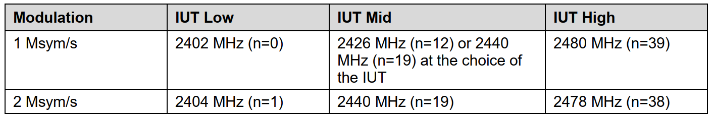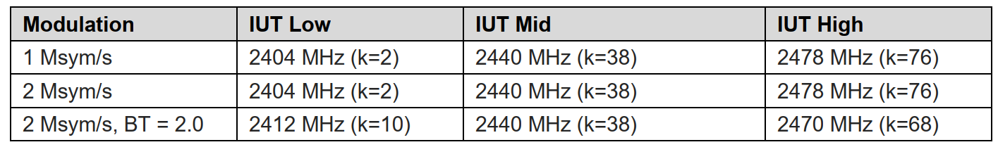 | RFPHY/TRM/BV-09-C [Stable Modulation Characteristics, uncoded data at 1 Ms/s] | 247.5 kHz ≤ ∆f1avg ≤ 252.5 kHz | 1 Ms/s | MAX_TX_LENGTH |