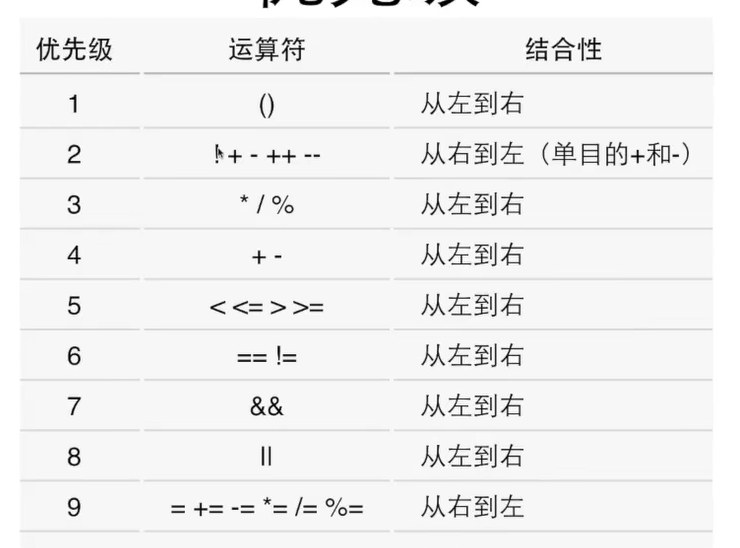 - 优先级越高的运算符,会优先参与运算,无需额外括号限定顺序。