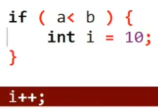 i++时,i已经超出了它的作用域(if代码块结束后,i会被销毁),编译器会判定此处的i是 "未定义的标识符",从而报错。