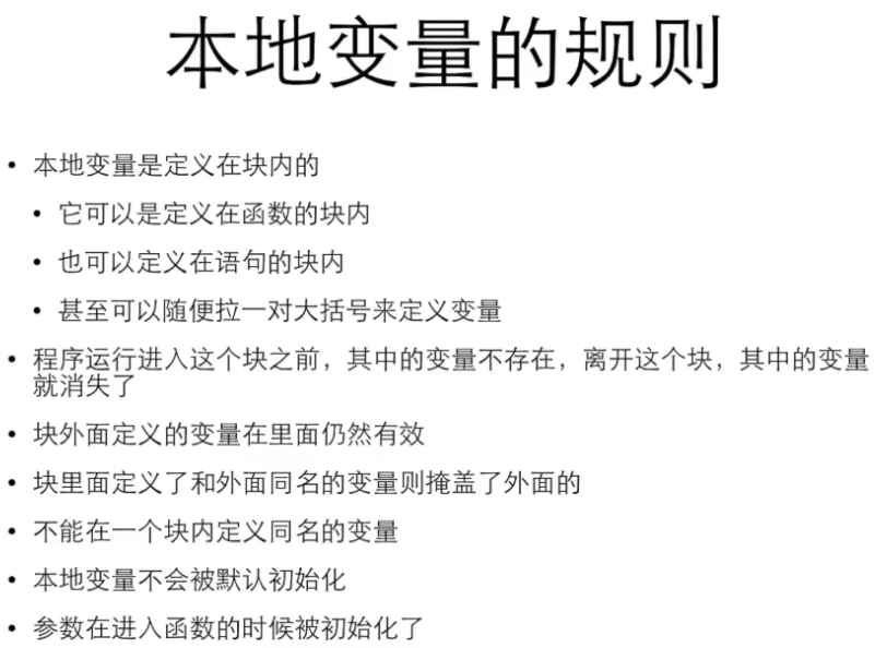 1. 本地变量是定义在块内的(函数块、语句块、任意大括号块)