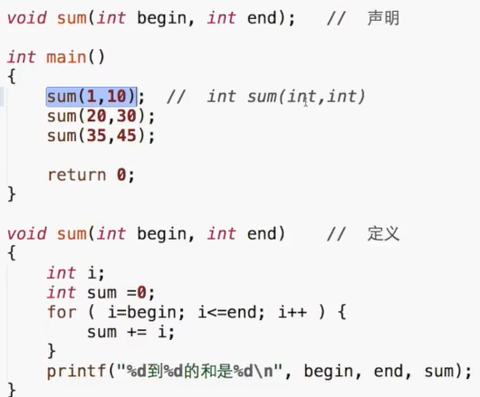 int sum(int a, int b); // 函数sum,返回值int类型,参数int类型