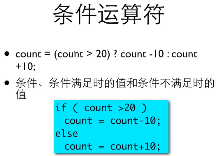 表达式:count = (count > 20) ? count - 10 : count + 10;