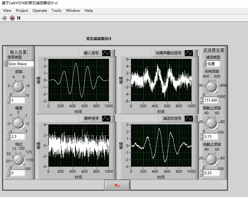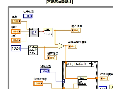 在LabVIEW中,设计好滤波器后,需要将其应用于实际信号中。以下是一个简单的滤波器实现代码: