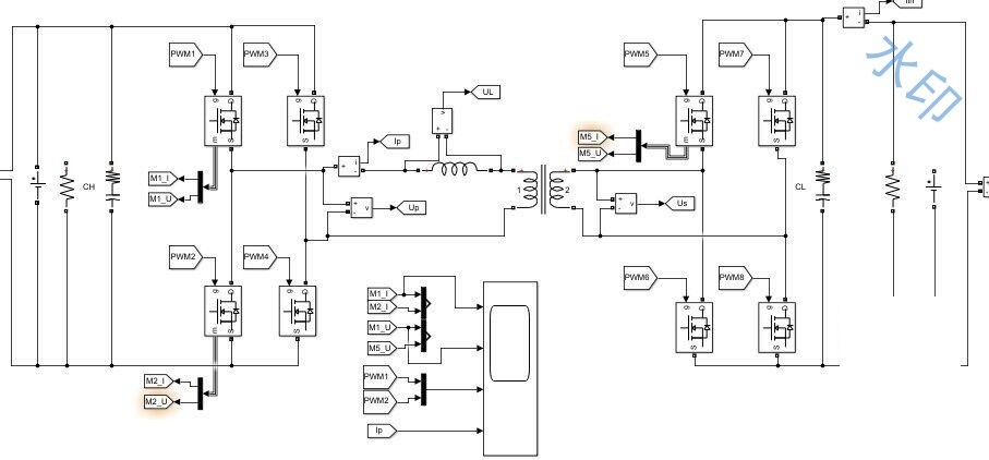 先甩个系统结构图(图1):左右俩H桥中间夹着个高频变压器,开关管全都挂着反并联二极管。重点来了------移相控制!左右桥臂的驱动信号错开个相位角,这个相位差直接决定了能量流动方向和功率大小。