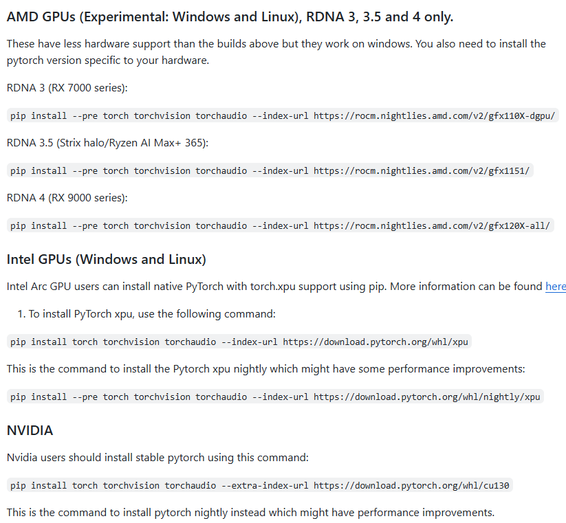 官方对各种GPU要下载的 Pytorch有说明: