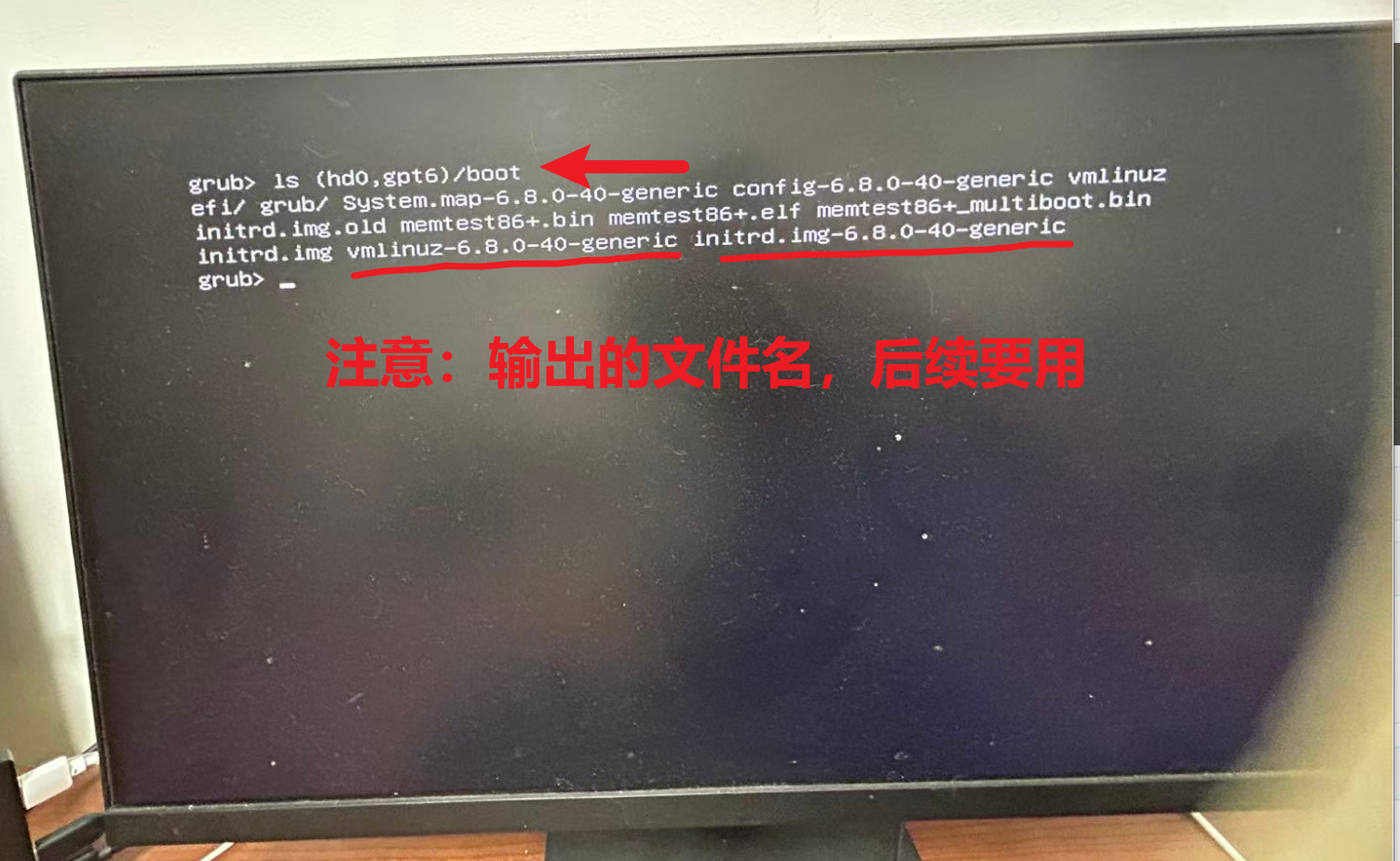 initrd (hd0,gpt6)/boot/initrd.img-6.8.0-40-generic