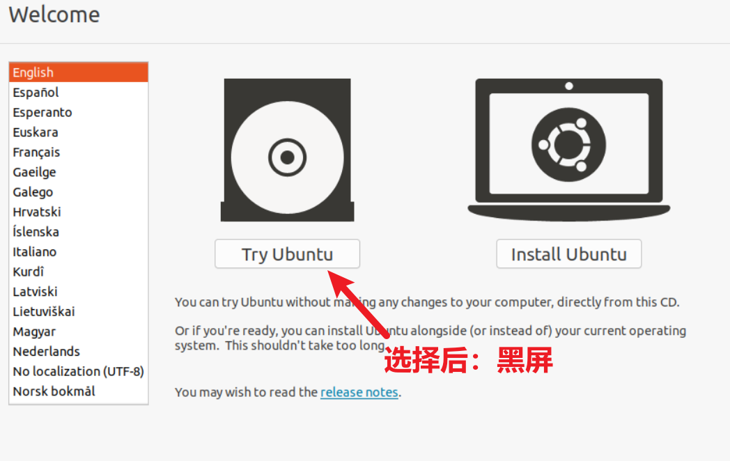 2、很多人说:再次进入try install ,但是我一进去就是黑屏。