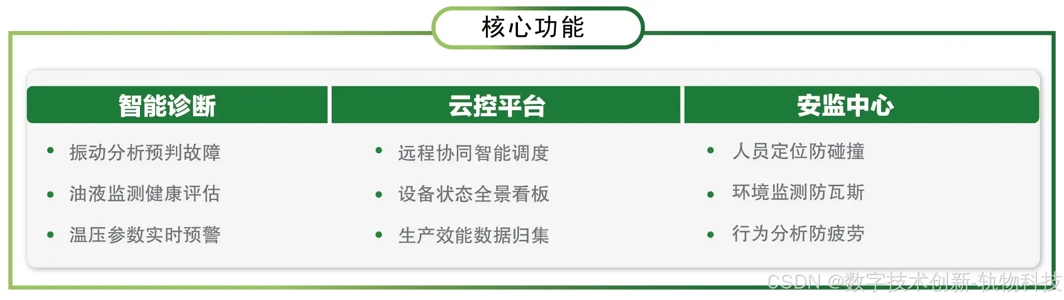 - 深度设备模型: 基于物理机理与机器学习,构建核心矿山设备的"数字孪生"模型。