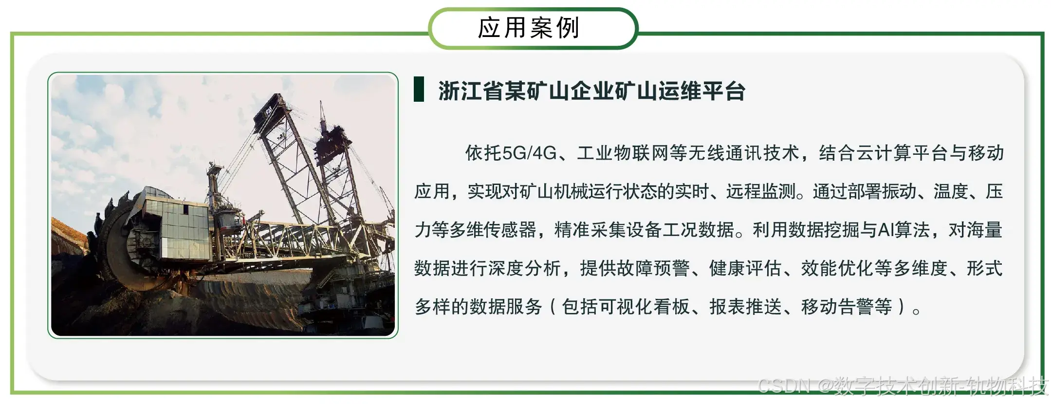 - 强大的云端物联网平台 (IOT Platform) : 构建矿山的"数据大脑",海量存储、高效处理 来自各类设备的时序数据、图像和音视频。