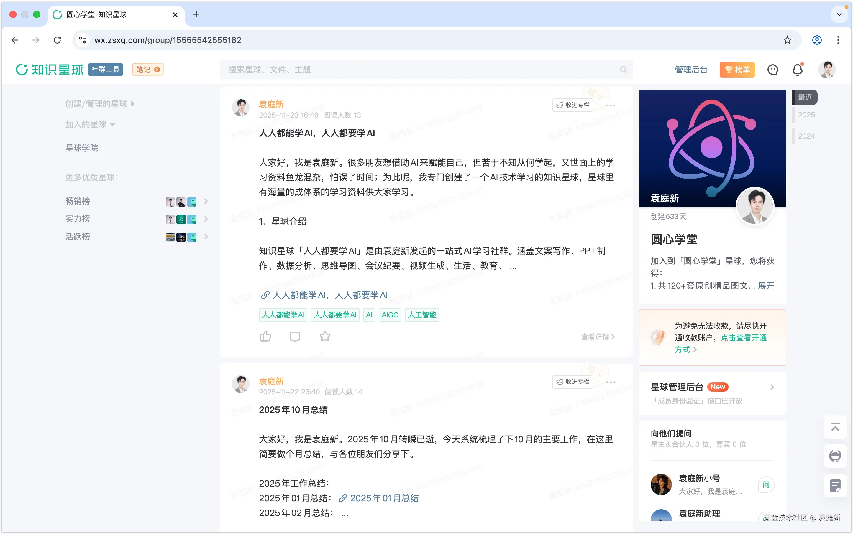 同时,在「圆心学堂」知识星球中,发布4篇主题,主要是对AI技术的思考和个人成长方面的内容。
