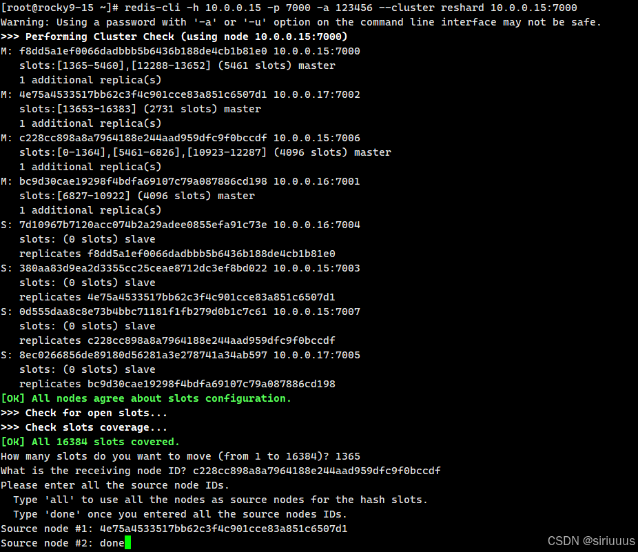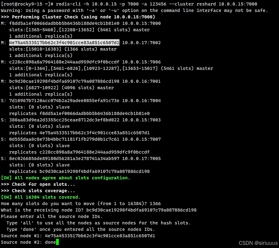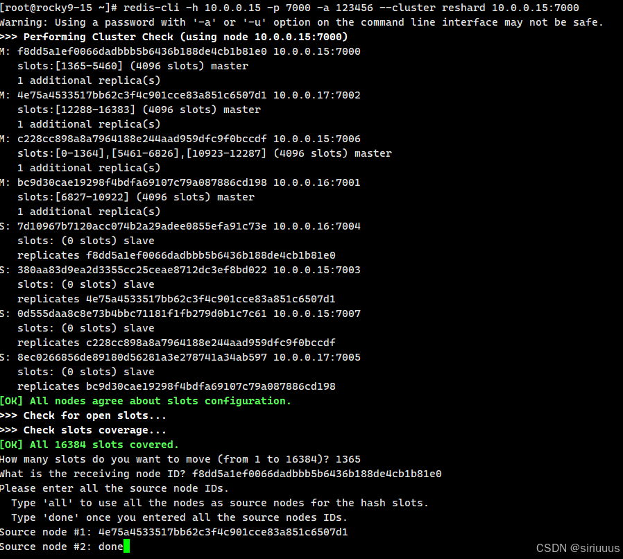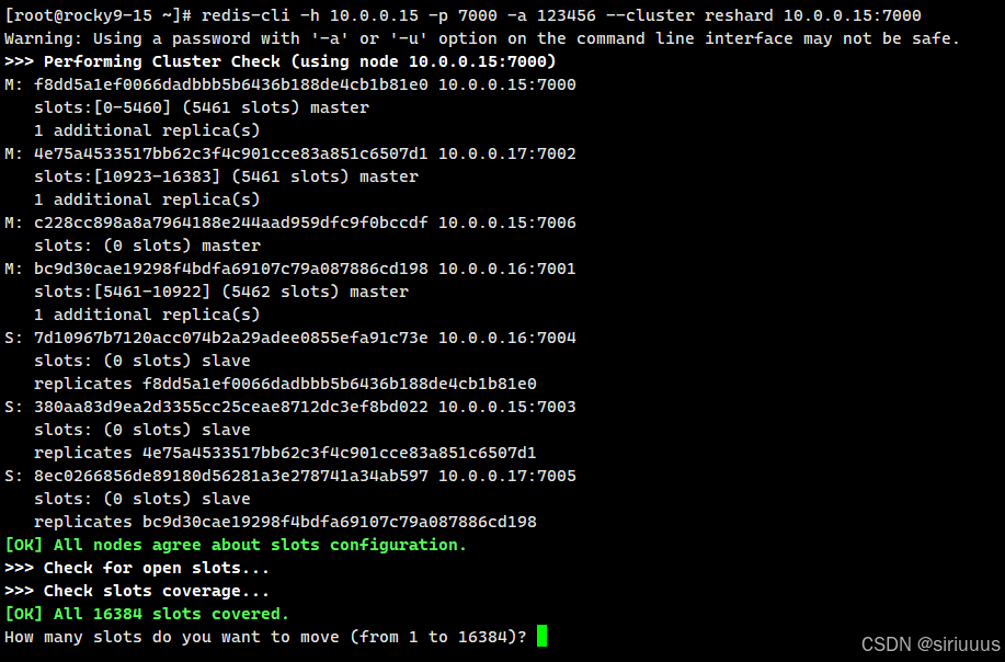 redis-cli -h 10.0.0.15 -p 7000 -a 123456 --cluster reshard 10.0.0.15:7000
