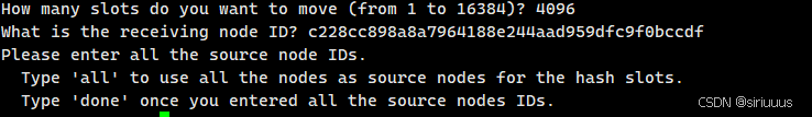 新分配多少个槽位=16384/master个数,此处输入4096,再输入新 Master ID