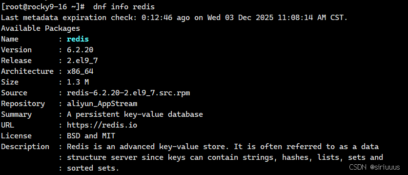 系统源自带redis软件包,通过 yum 或 dnf 安装