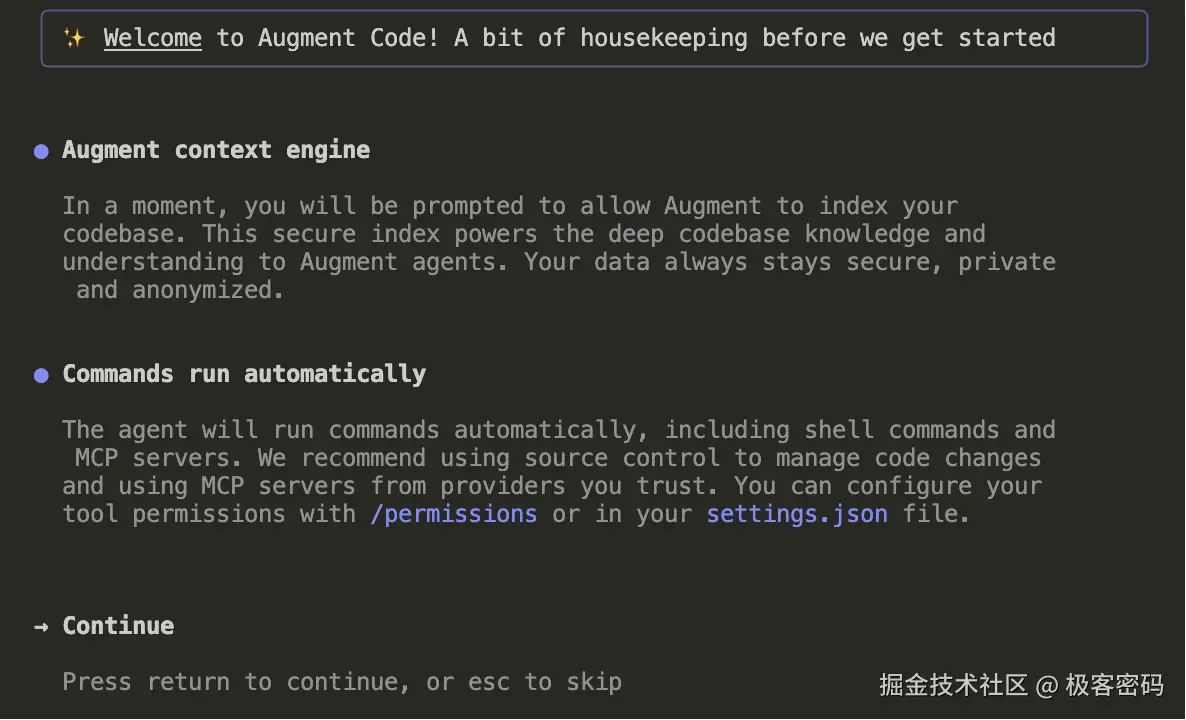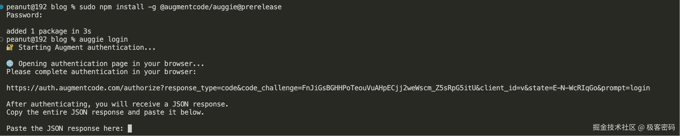 会自动打开浏览器,使用 augment 账号正常登录即可