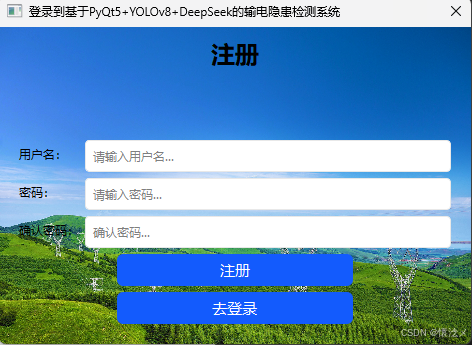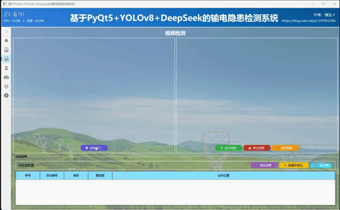 基于 PyQt5 + YOLOv8 + DeepSeek 的输电隐患检测系统 致力于解决传统输电线路巡检中效率低、人工依赖强、漏检率高等问题。输电线路在复杂地形与多变气候中长期运行,易出现异物挂线、绝缘子破损、金具异常、植被超高等多类隐患;传统巡检方式往往依赖人工图像查看或现场排查,不仅耗时、主观性强,还容易因视角受限或疲劳导致隐患被忽略。