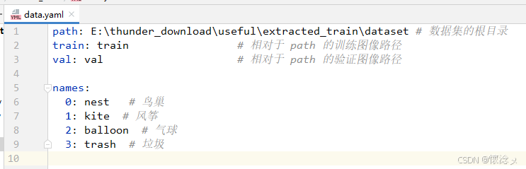 我们为模型训练准备了几百张输电中的鸟巢、风筝、气球、垃圾图像,然后使用VOC的格式存储数据标注文件,单数据标注文件内容如下: