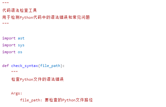 ast模块进行正式的语法解析,能够准确检测大多数语法问题。 -