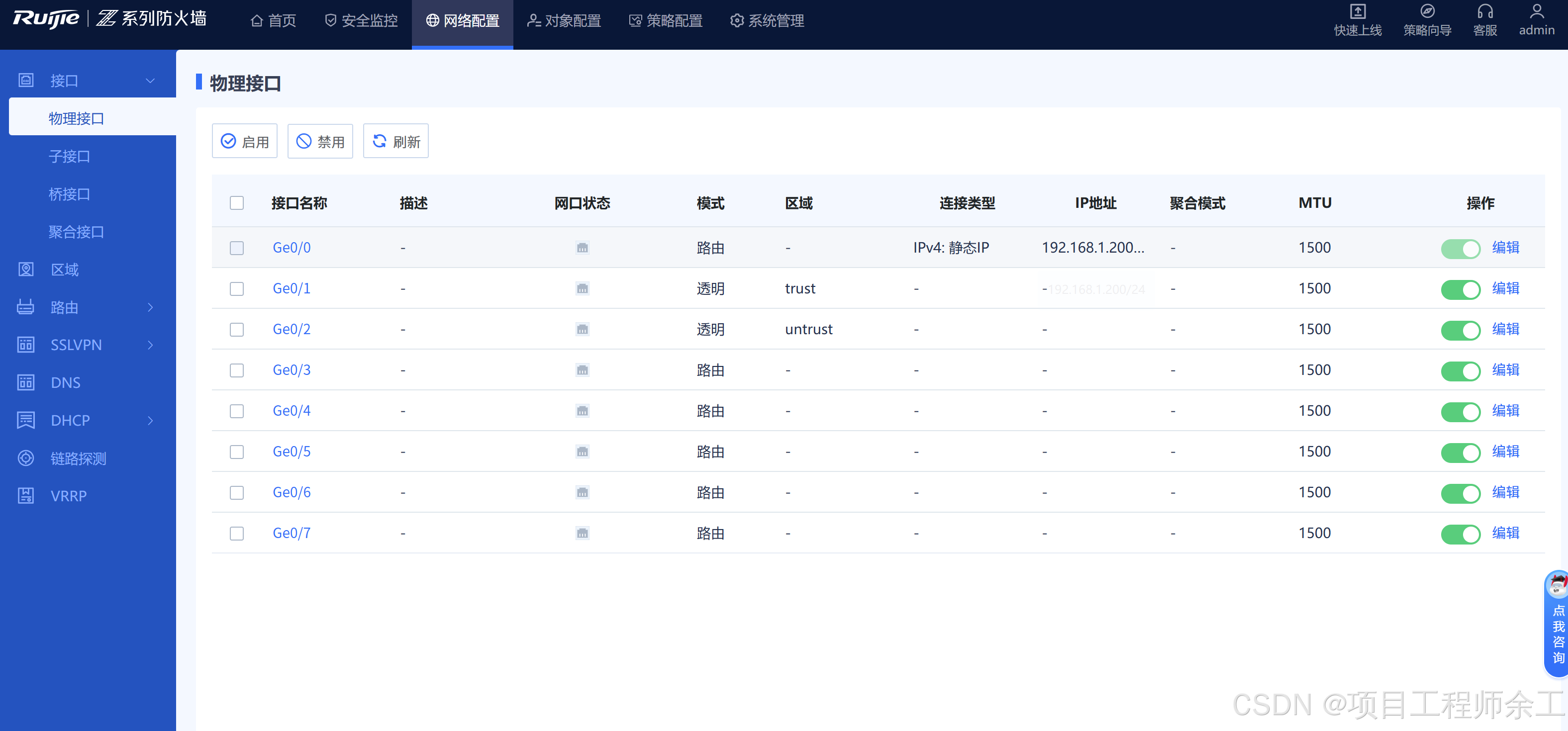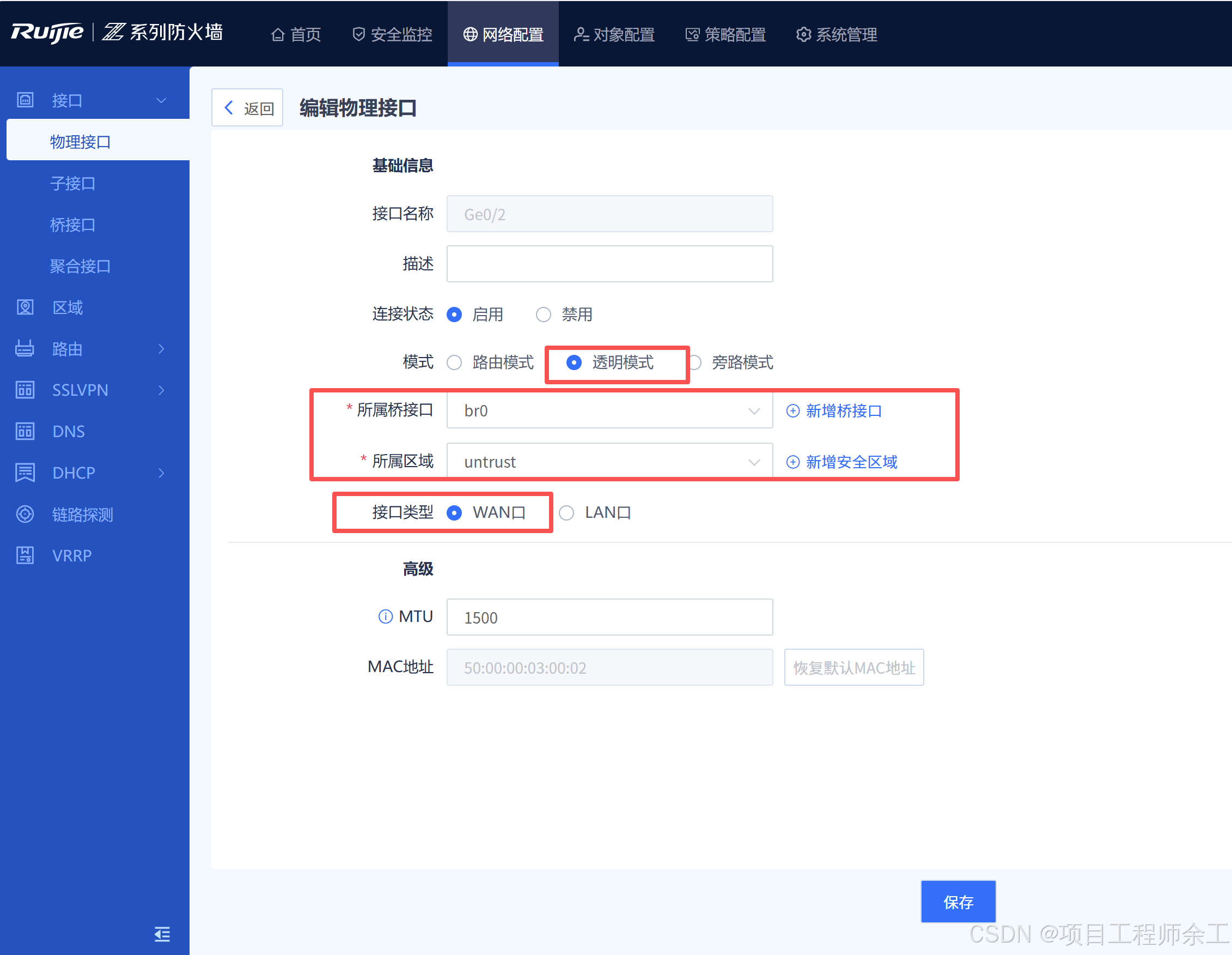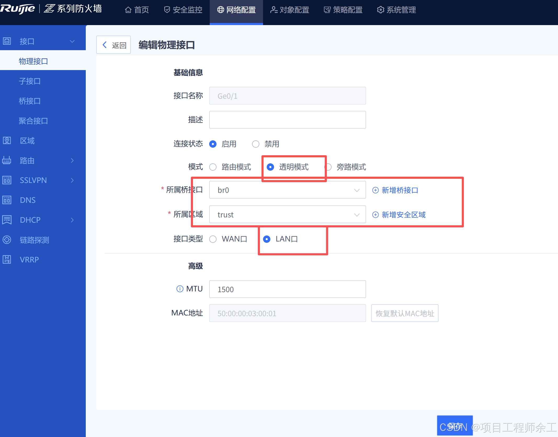 1、防火墙做透明模式用web配置,其它设备用命令行配置