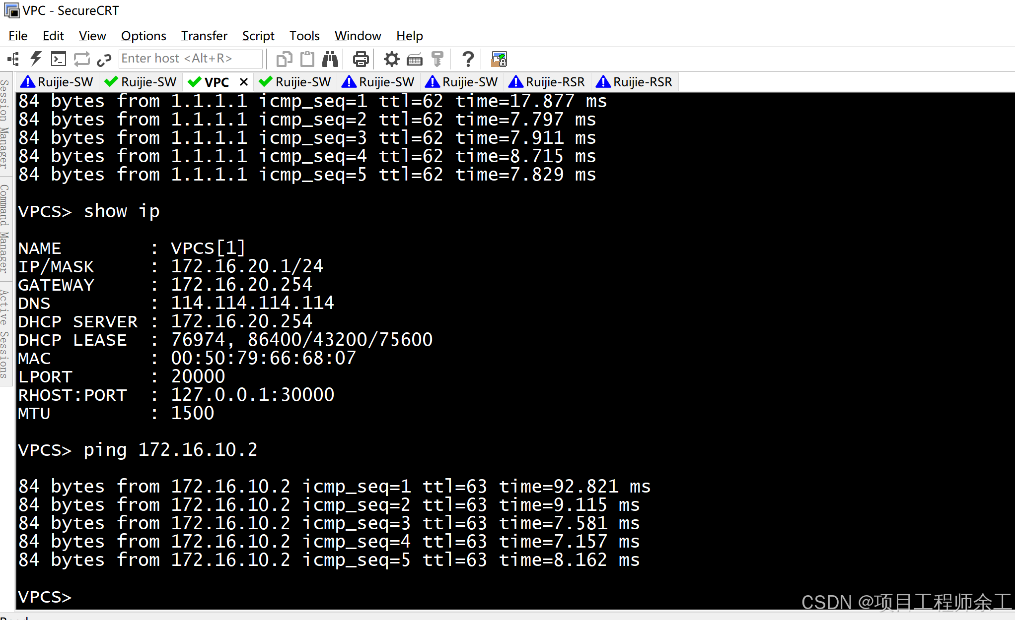 6、pc使用dhcp自动分配地址,dhcp放在核心上
