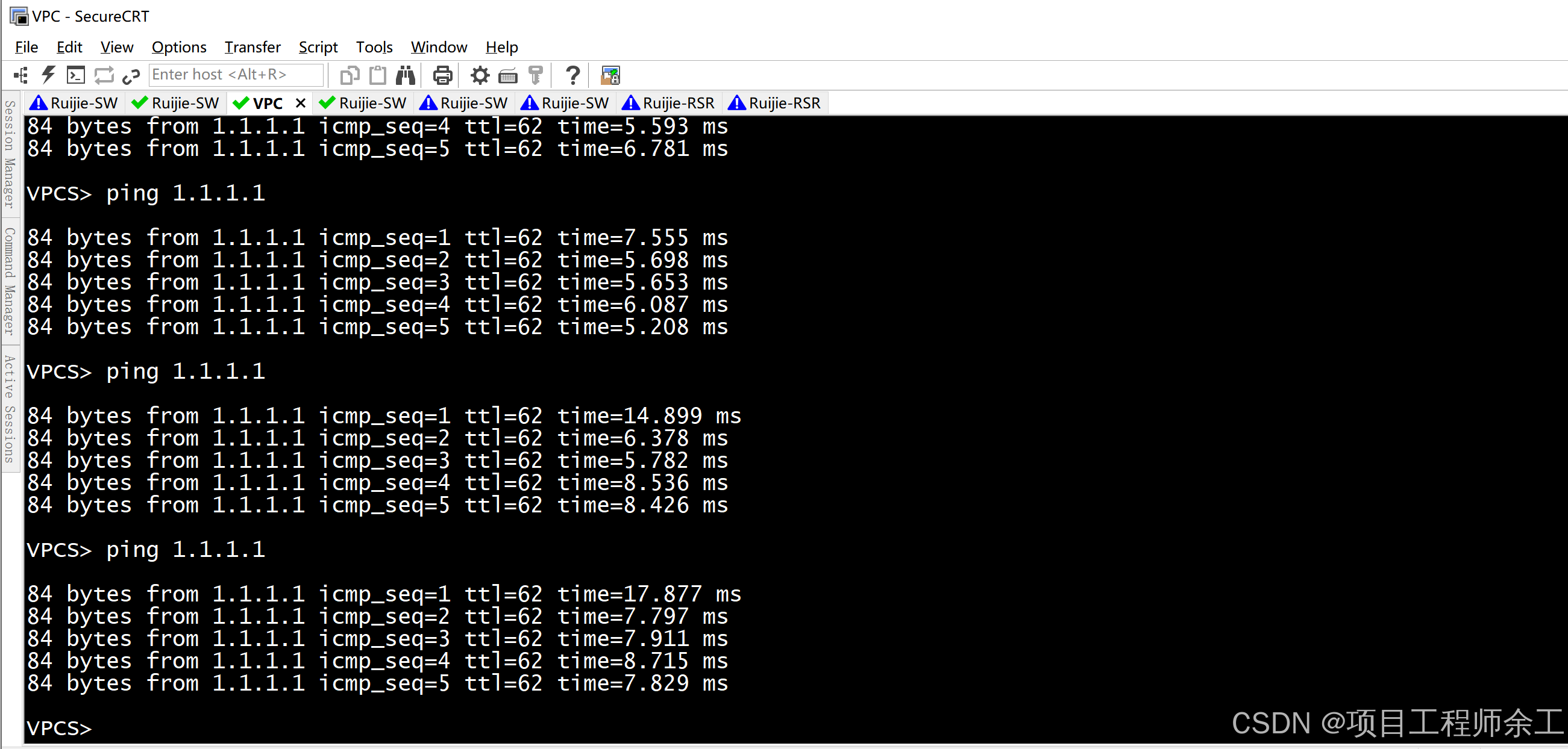 4、所有交换机跑rstp生成树,核心配为全网根桥权限最高