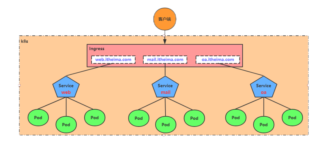 用户编写Ingress规则,说明哪个域名对应kubernetes集群中的哪个Service