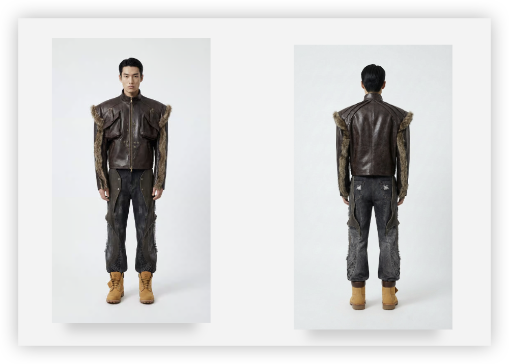 在一个相对完整的虚拟试穿工作流里,通常会把衣服的前后、上下身分开输入,比如上衣正面和背面、裤子正面和背面、鞋子正面和背面。