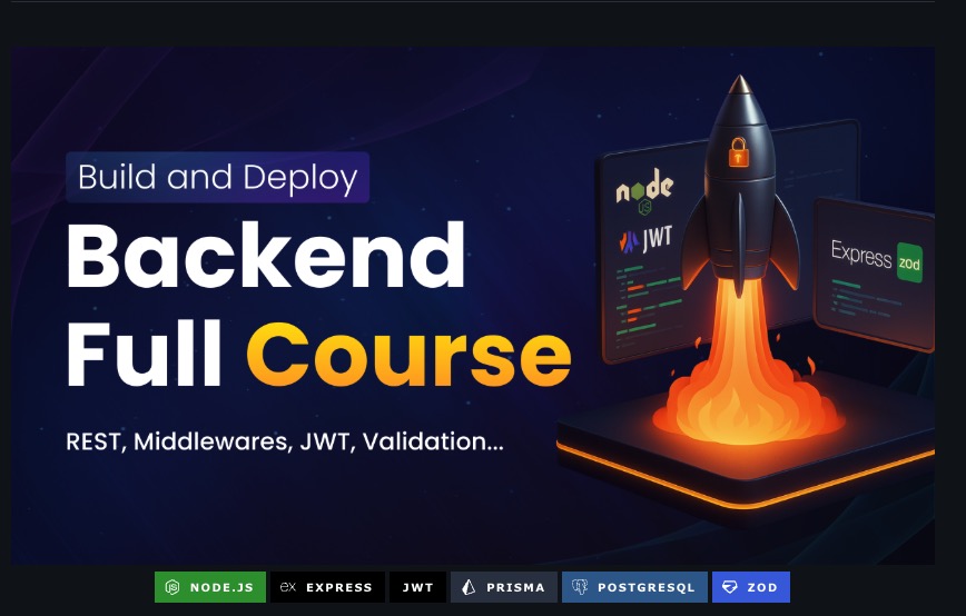 Perfect for developers looking to master backend development, learn API design, implement authentication, work with databases using Prisma ORM, and build production-ready backend applications.