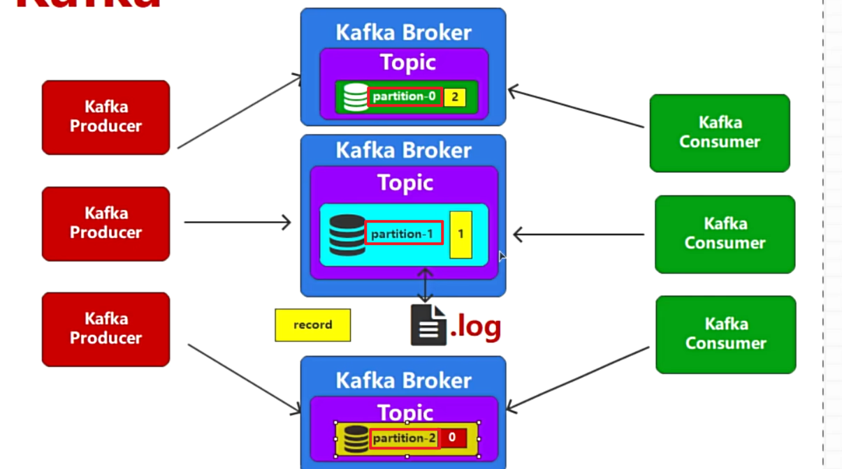 - 正常来说1个Topic是一个整体,现在却被划分到不同的broker的partition中,将partition编号,0-1-2-3