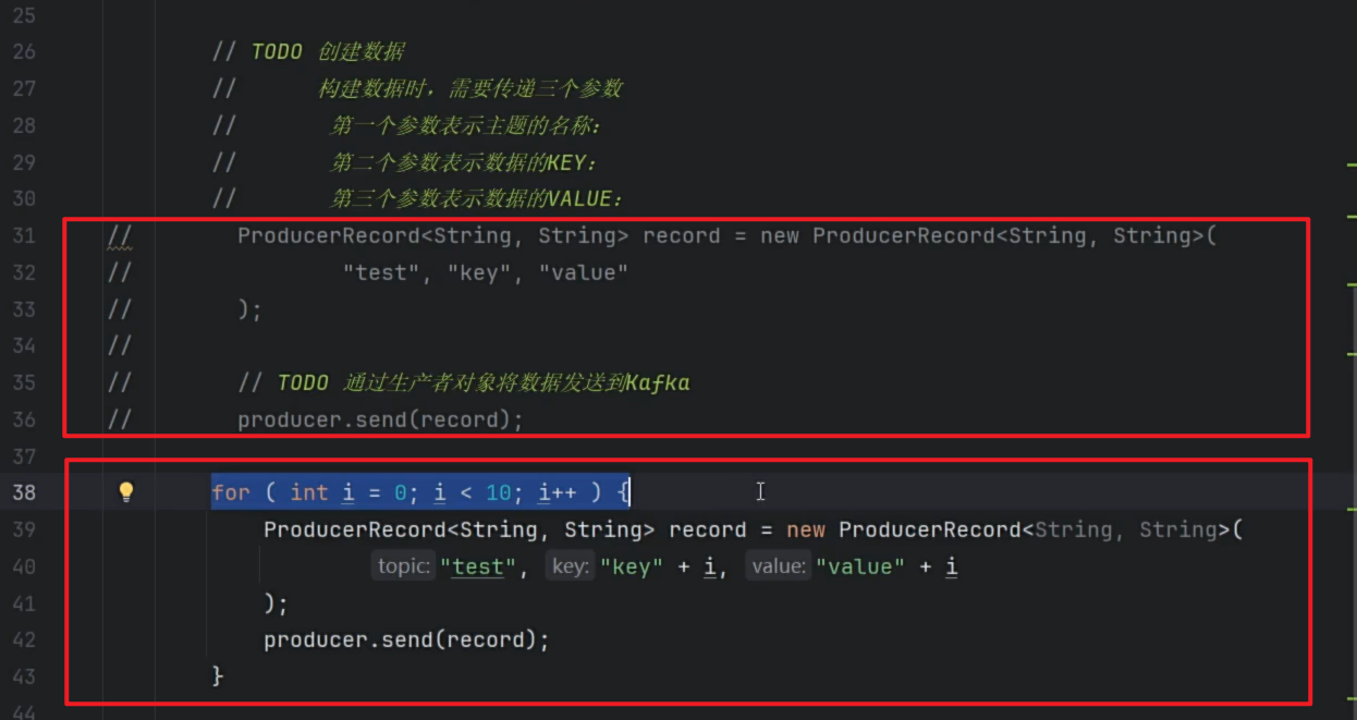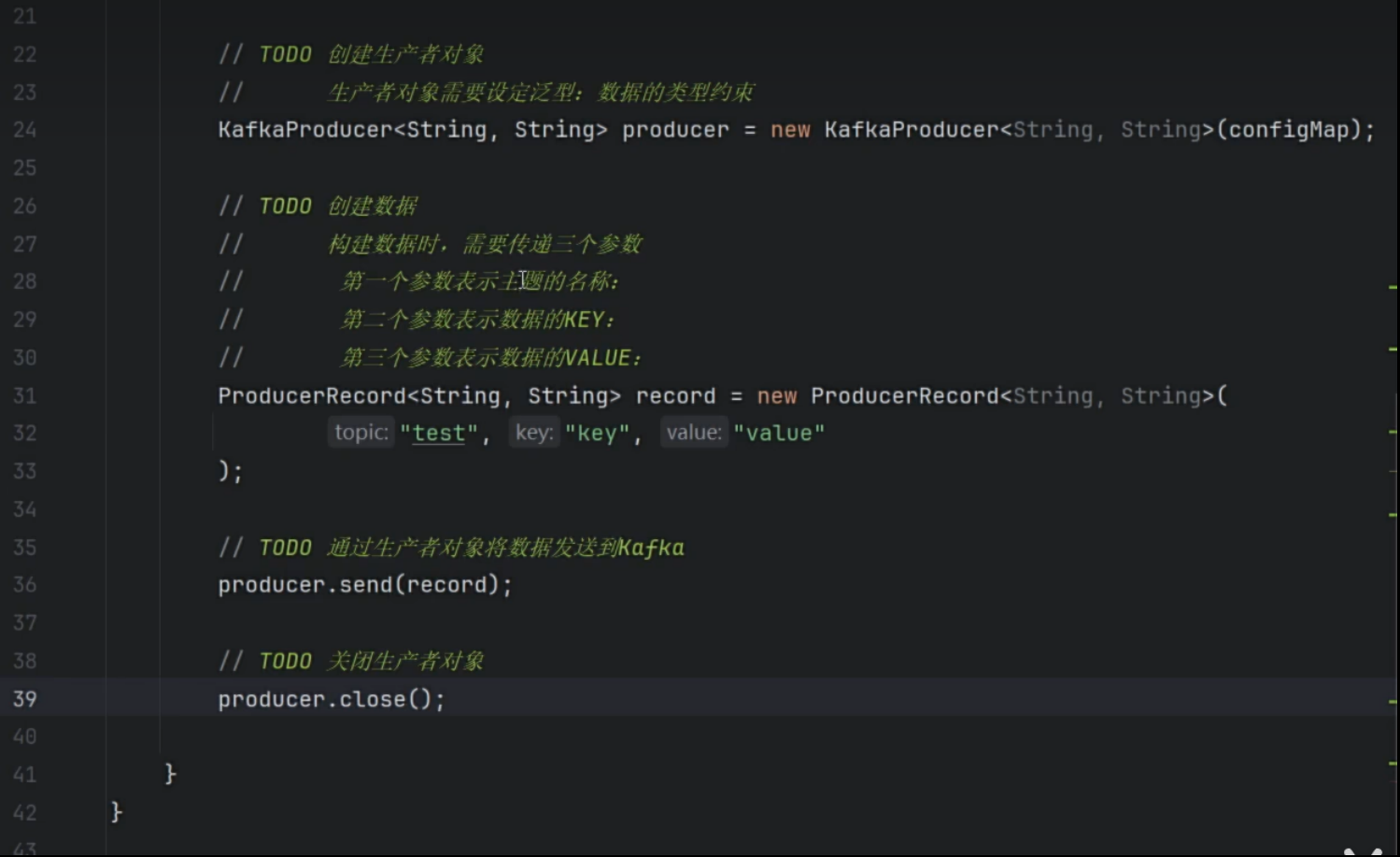 引包,配置连接参数,代码获取参数,连接kafka,设置主题,消息,发送,关闭连接