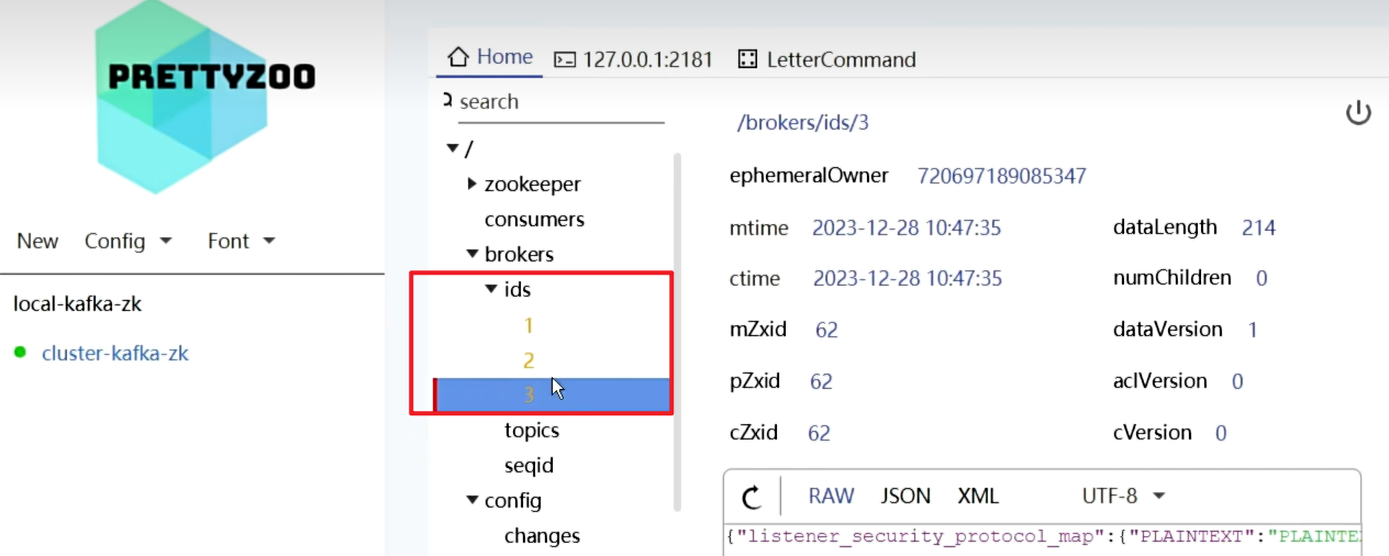 - ZK有节点1和2了,启动Broker3,ZK当中创建第3个节点,id=3;