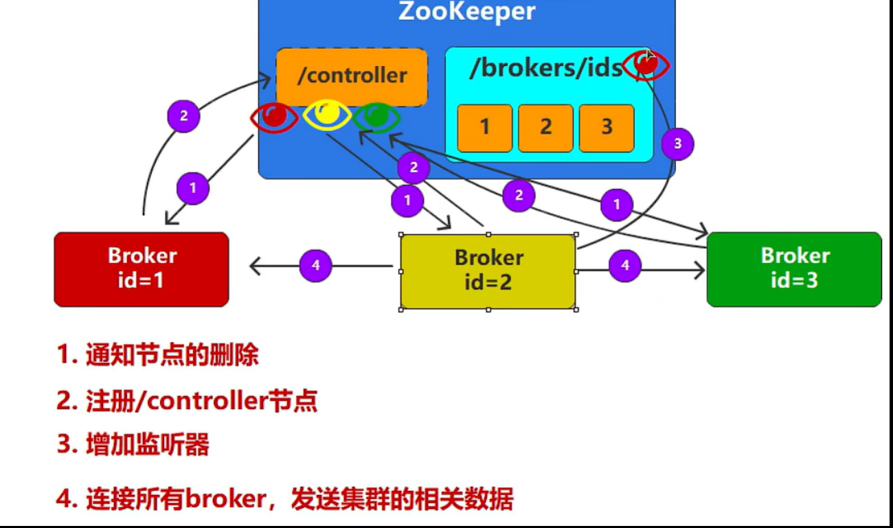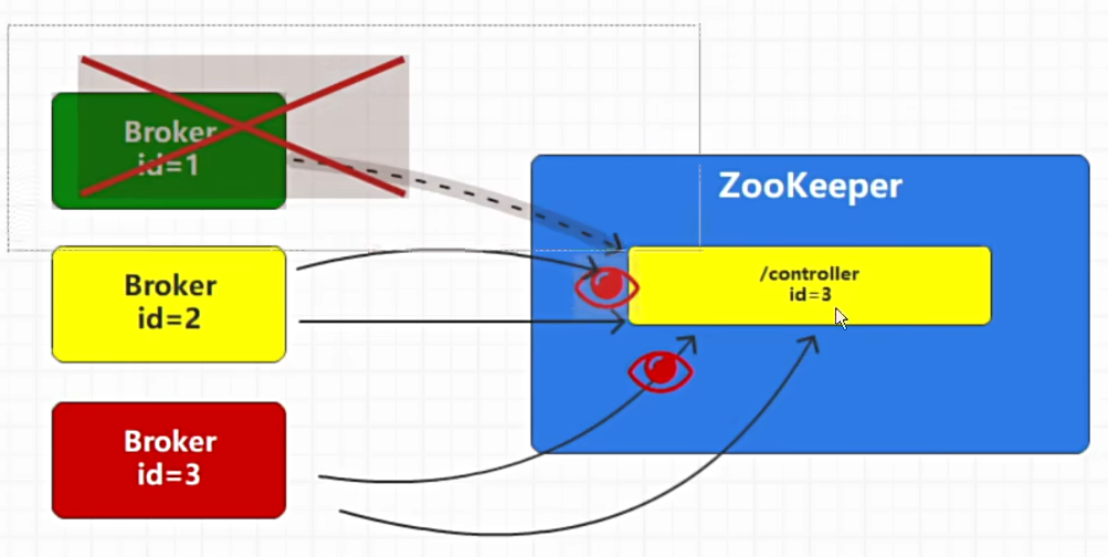 一旦Broker1宕机,Broker2和Broker3就会竞争,成功者会成为集群的管理者;