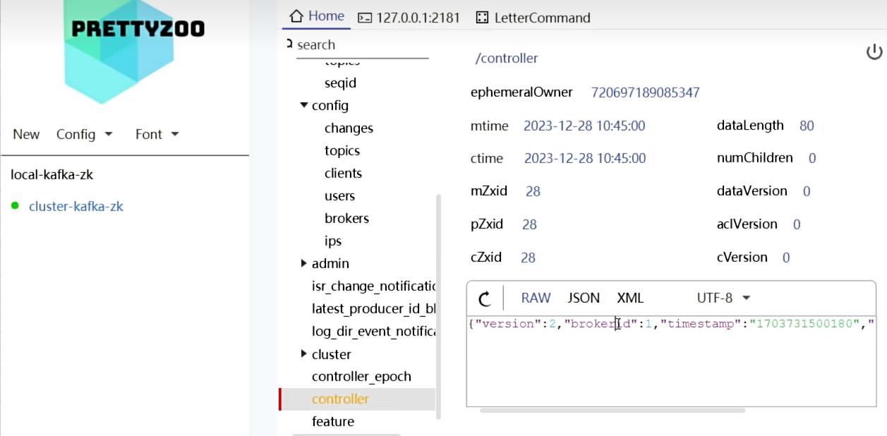 - ZK有节点1了,启动Broker2,ZK当中创建第2个节点,id=2;