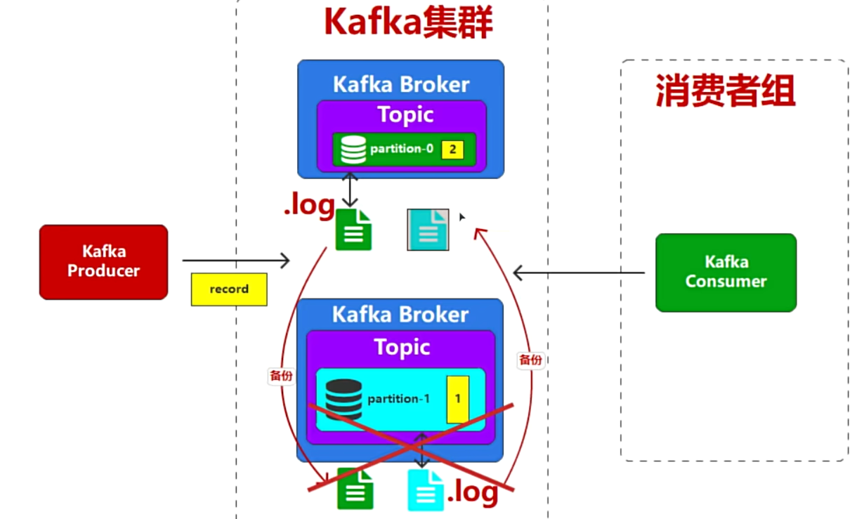 - 如果某个Broker宕机,那对应的partition的消息就无法消费了,所以要有个备份,保证其中一个宕机,也能消费到那个宕机的Broker的消息