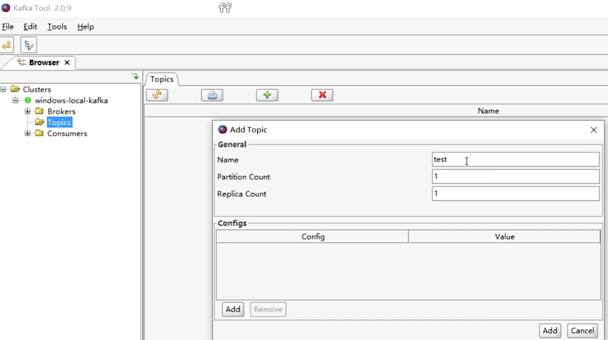 先连接kafka服务器,并创建主题Topic