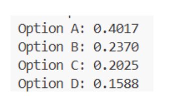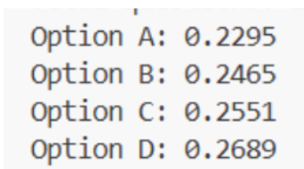 算出模型对每个编号(A/B/C/D)的"偏爱程度"。
