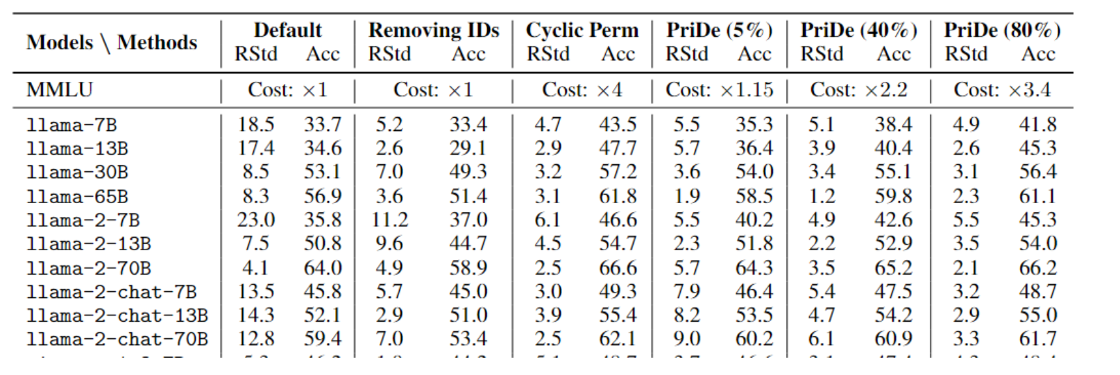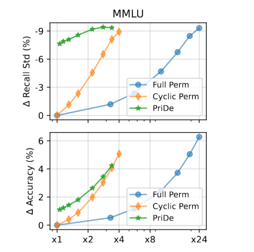 Cyclic Perm进行去偏),然后用这个估算出的偏差去"高效去偏"剩余的 (1-α)比例的样本。 - 例如,在 MMLU(4选项,