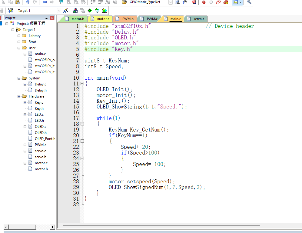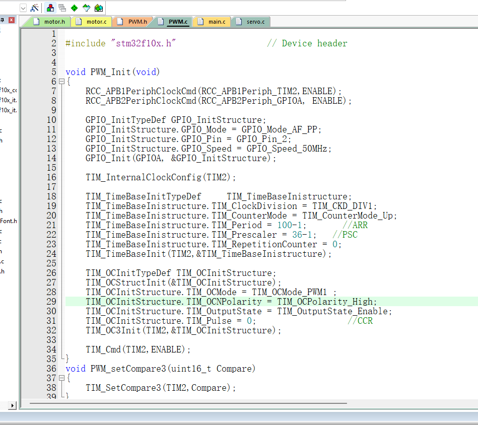 缓慢增加占空比 → 电机平稳启动,避免电流冲击。