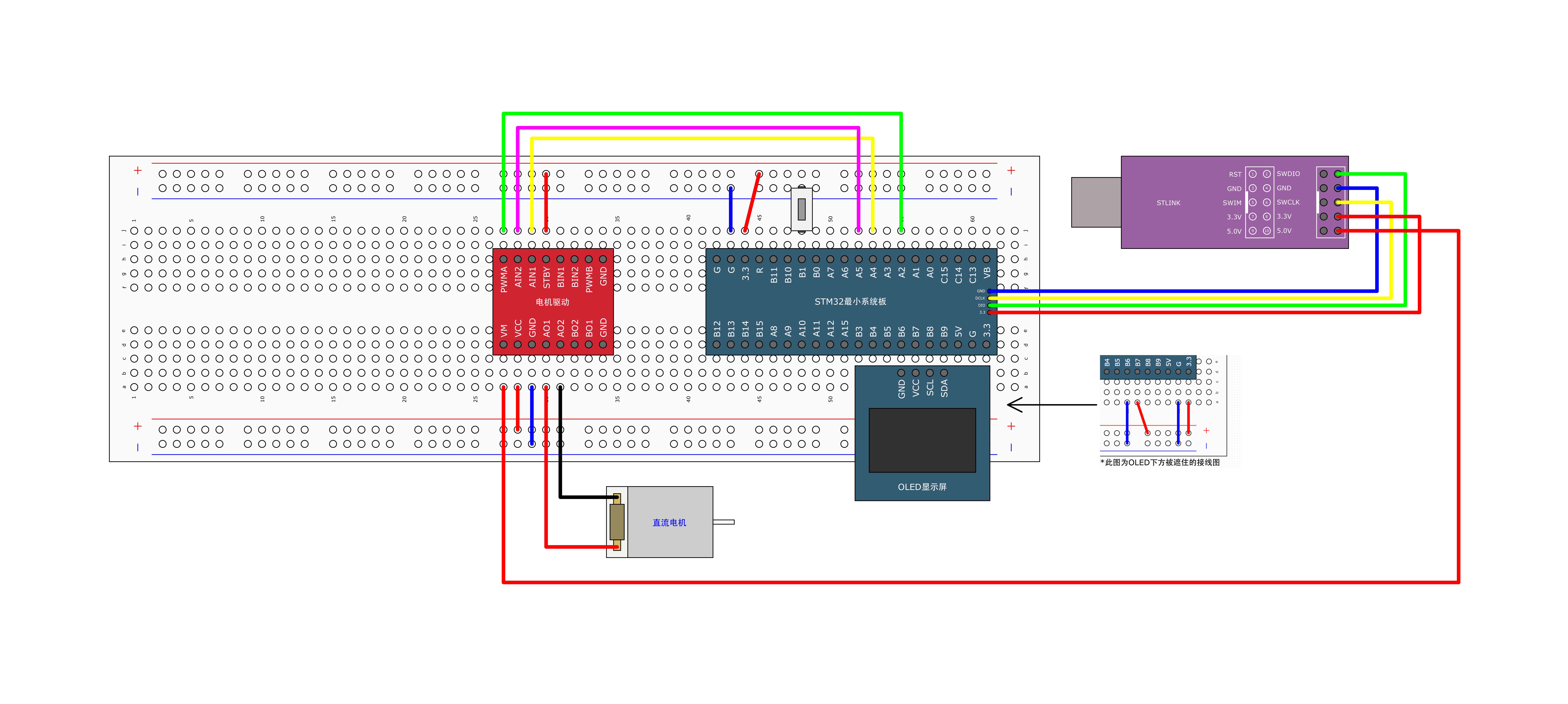 STM32 定时器产生 PWM → 经过电机驱动芯片(如 L298N、TB6612)→ 调节电机电压。
